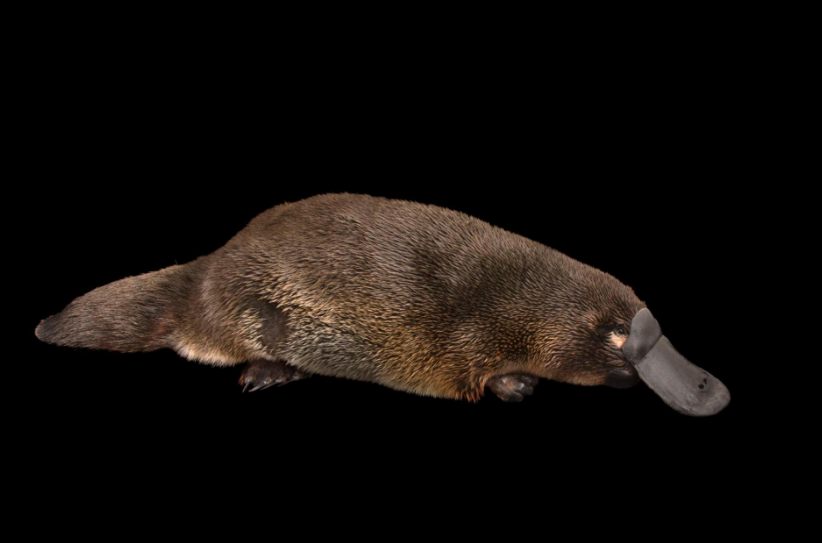 ▲鴨嘴獸是少有的卵生哺乳動物,主要棲息於河川,在河岸、湖岸邊挖洞居住,腳有蹼可在水中活動。