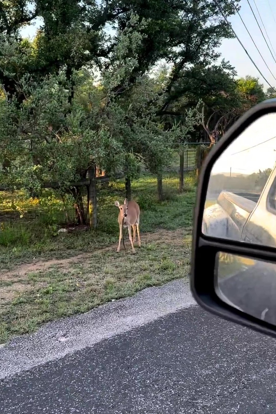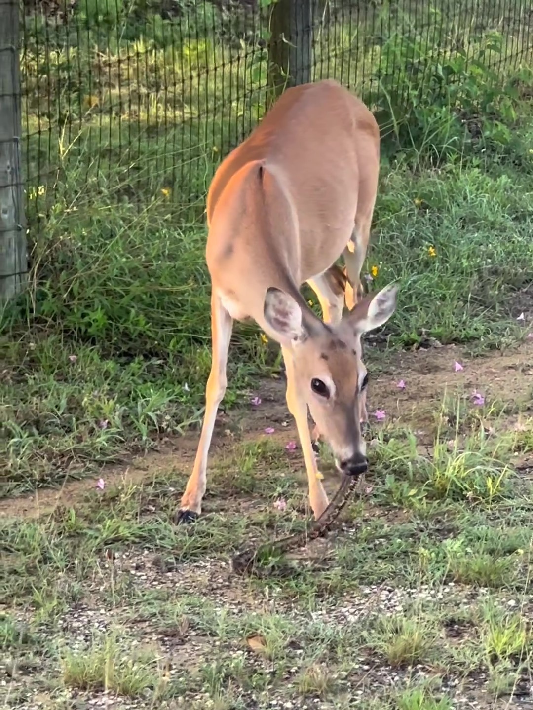路邊見野生斑比「叼一條草繩」嚼得好香~鏡頭拉近網全看呆:這不是素的...