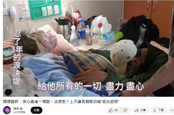 陳凱倫表示那天的「迴光返照」,是這些年來最珍貴的一刻:「一般沒經歷過的家屬,或許無法理解她突然睜開眼睛,這是帶給家人的驚喜?希望?但又害怕上帝跟我開了一次玩笑?!」