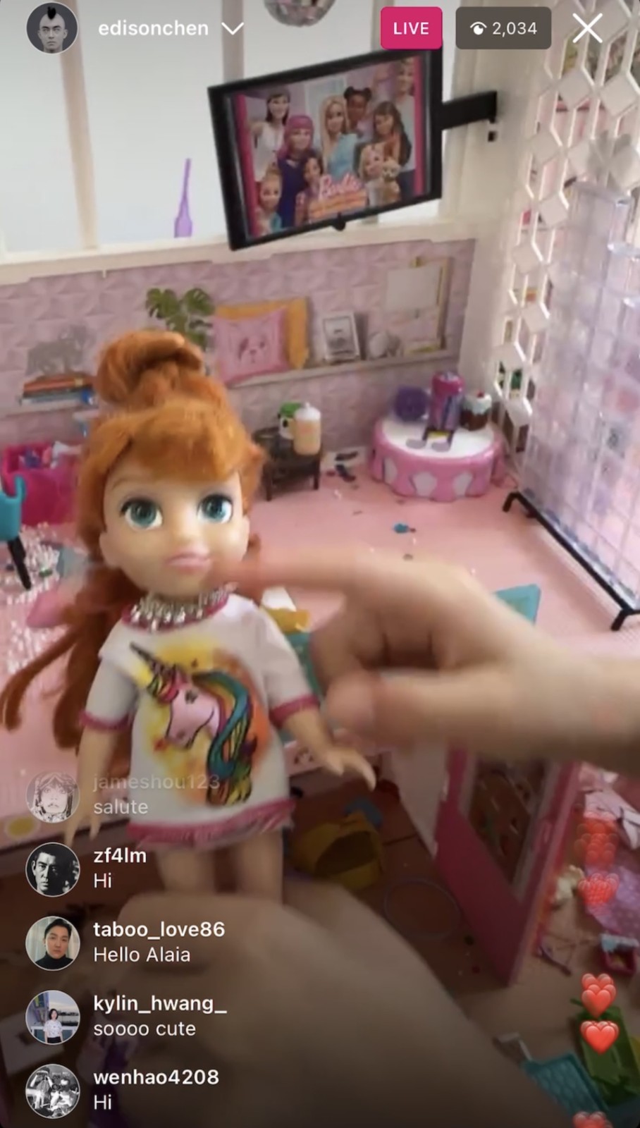 陳冠希曾在IG直播中、和女兒同框,並開箱Alaia的玩具屋,讓她自己介紹,Alaia面對鏡頭一點也不害羞,落落大方地講解屋內布置,有衣櫃、睡床、玩具箱、吉他等等,他問Alaia:「全都是妳設計的嗎?」Alaia自豪地回:「對啊,是我設計的。」她更自信表示,以後還要設計整間大屋子!