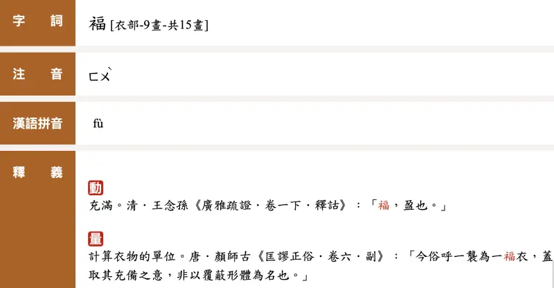 查詢教育部《重編國語辭典修訂本》可知,這兩個字不僅讀音不同,含義也大不相同。「福」字讀ㄈㄨˊ,代表富貴、壽考或是好運氣;而「褔」字讀ㄈㄨˋ,則是用來代表充滿或計算衣物的單位。對於這個意外發現,當事人表示問過父親緣由,父親堅稱自己當初沒有寫錯字,只是把神明指示的名字拿去戶政事務所登記,懷疑可能是戶政人員建檔時出現錯誤。