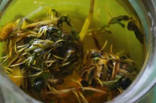 蒲公英茶;具有促進腸胃消化、清血、強健肝臟、利尿、化食毒,改善便秘、青春痘、畏寒,可清熱毒、消惡腫等功效。