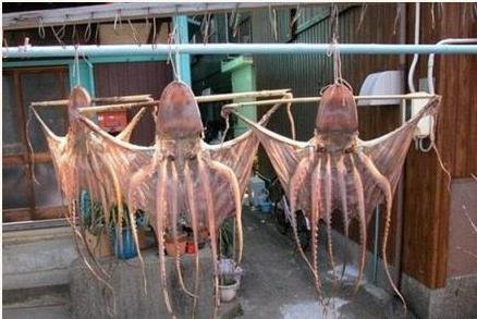網友看完也分享自己拍攝到其他曬章魚乾的畫面,如果半夜看到肯定會做惡夢以為有怪物現身,也有網友開玩笑表示:「誰這麼沒公德心?曬好留一隻給我」、「下面直接生火開烤了啊」、「可以刷烤肉醬嗎?」、「感覺味道會很重...」