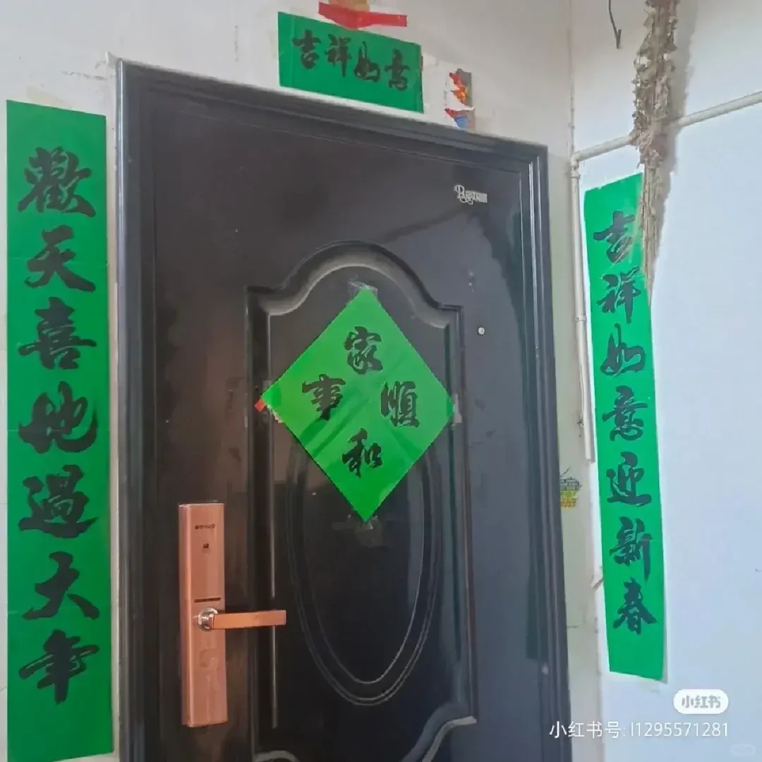原PO在小紅書貼出照片,只見門口貼出春聯,上面寫著吉祥話祝賀語,包括「吉祥如意事事成,榮華富貴年年順。」、「富貴平安,萬事如意。」而抬頭看向橫批則是寫著「財源廣進」,然而這個看似沒什麼的春聯,顏色卻跟我們想像中不一樣,居然不是紅色而是綠色的,這也讓原PO忍不住發問,「誰知道綠色春聯什麼意思?」。