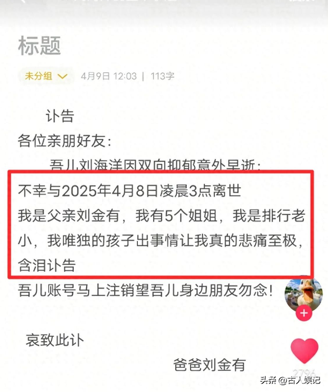 「再見吾兒。」4月9日,來自中國鄭州的一名陽光帥哥「劉海洋」的爸爸,發布了一則訃告,他唯一的兒子於4月8日凌晨三點去世,讓許多網友都感到不捨...一向給人開朗又溫暖印象的他,怎會突然撒手人間呢?