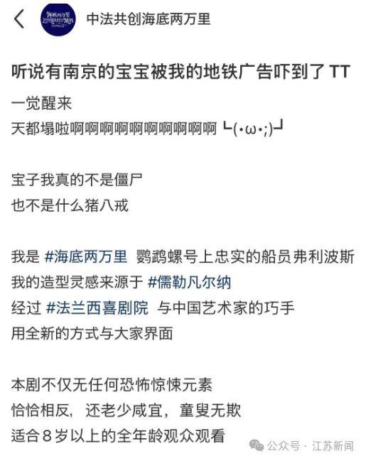 據了解,這張圖出自話劇海報《海底兩萬里》,這部話劇將於5月10日至5月11日在南京上演。