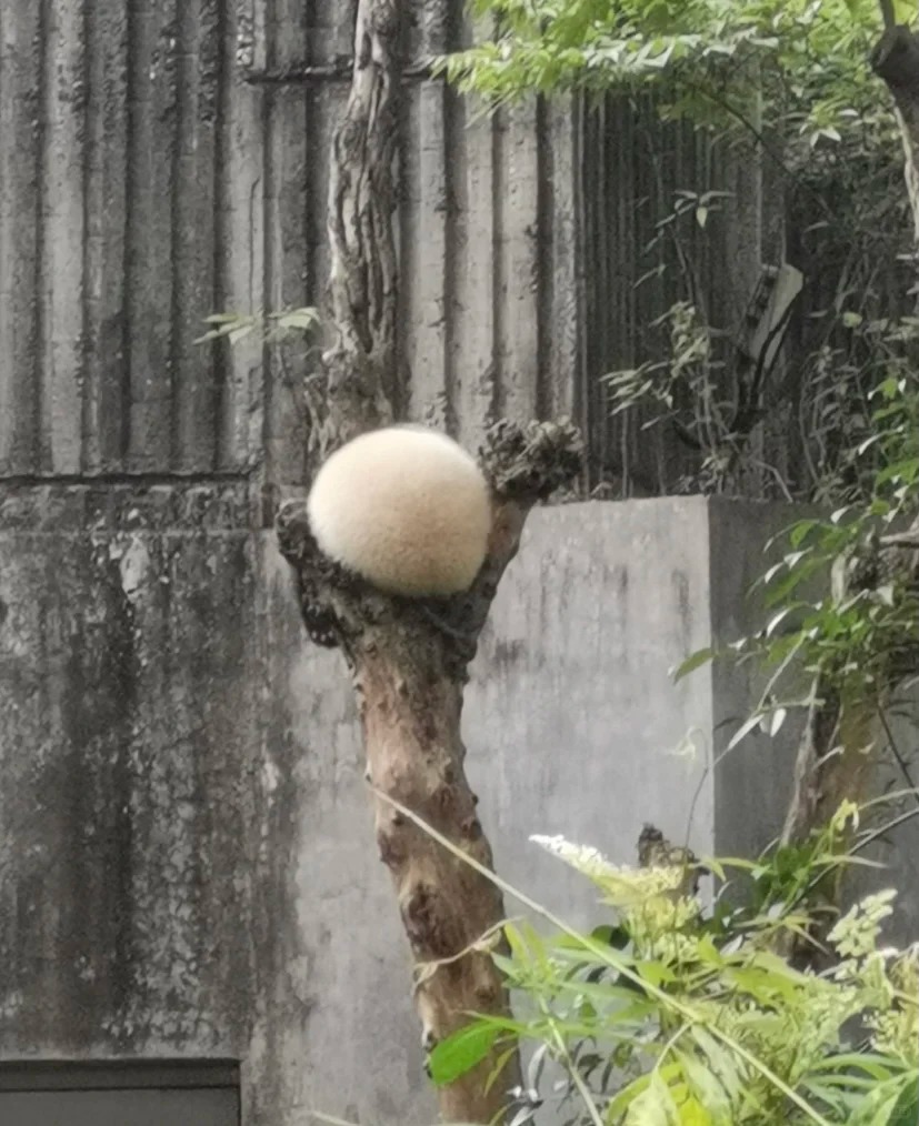 原來樹上的這個蒲公英,真實身分竟是在網路上有著大批粉絲的「大熊貓和花」啦~2020年7月4日,大熊貓和花出生在成都大熊貓繁育研究基地,和花軟萌可愛的形象深受大家喜愛,甚至被封為「熊貓界的頂流女明星」,和花外表極具辨識度,大家總能在眾多熊貓中輕易地找到牠,一整隻胖嘟嘟又毛茸茸的,坐下時就像一個三角形的飯糰XD
