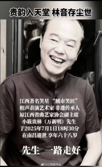 7月1日,貴林社工作人員透露,江西省著名笑星、相聲表演藝術家原江西省曲藝家協會主席萬新明先生(藝名「小筱貴林」)於2025年7月1日18時30分在南昌逝世,享年六十八歲。