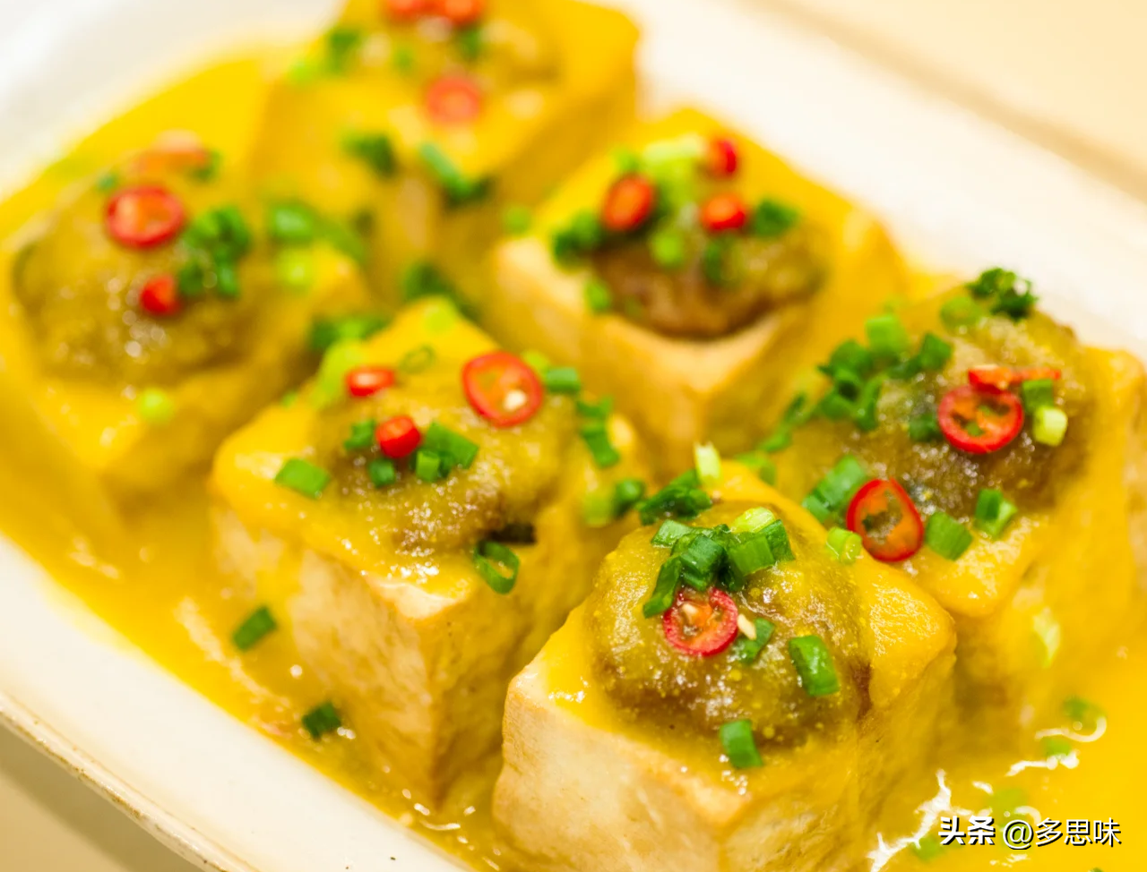 豆腐寓意都福、都福!營養豐富,鮮嫩多汁,口感鮮嫩,表皮略帶酥脆,咸香微辣還有一絲南瓜的香甜。
