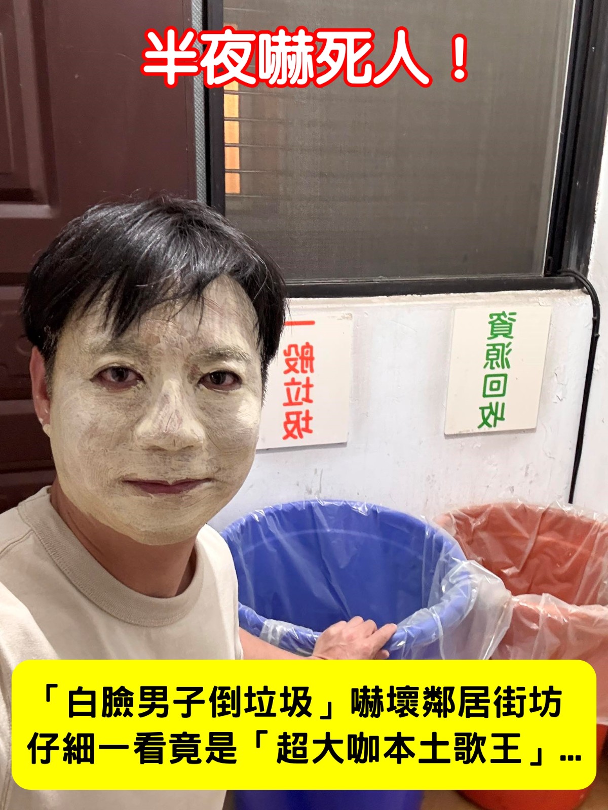 半夜嚇死人!「白臉男子倒垃圾」嚇壞鄰居街坊 仔細一看竟是「超大咖本土歌王」