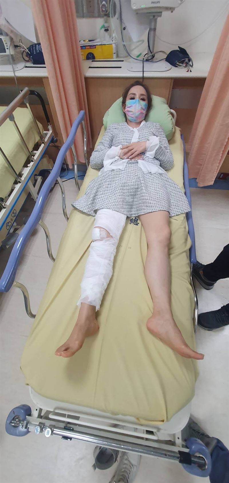 許聖梅提到,打石膏躺在病床上,什麼事都做不了,自然也只能把工作一一推掉,治療一次就要價2000元,一個月療程花費超過兩萬,過去自己曾每月進帳24萬,以通告接不完的狀況推算,消失的這一個多月,折合收入與開銷就讓她損失了50萬。