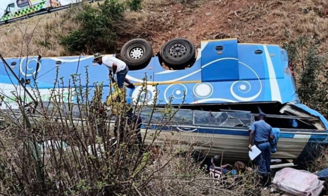 這起悲劇事件,發生在南非的山區,事發地點位於林波波省馬哈多鄰近的N1公路,距離邊境約90公里處。這輛客運原本載著乘客前往辛巴威,不料途中司機突然失控,造成車輛翻覆墜入山谷。由於撞擊力道極大,客運車體嚴重變形,救援人員抵達現場後,立即展開緊急救援行動。
