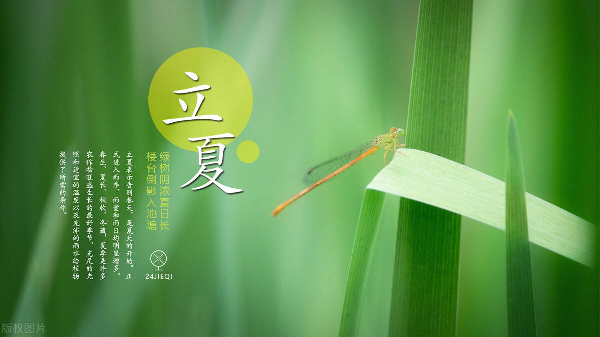 立夏,是進入夏天的標誌,正如古詩所述:「綠樹陰濃夏日長,樓台倒影入池塘。水晶簾動微風起,滿架薔薇一院香。」據《月令七十二候集解》解釋:「立夏,四月節。立字解見春。夏,假也。物至此時皆假大也。」這時候,油菜結籽,瓜果飄香,氣溫升高,雨水增多,萬物都到了生長最為旺盛的季節。