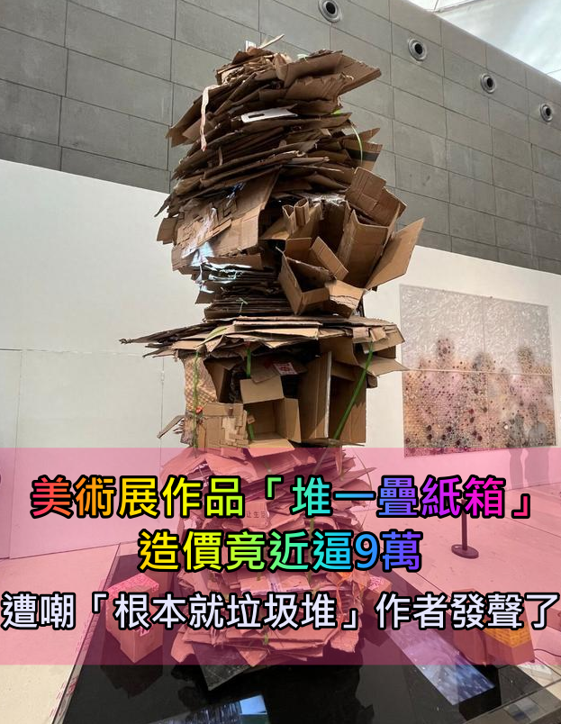 藝術好難懂?美術展作品「堆一疊紙箱」造價近9萬 網友大吐槽「像撿垃圾的」作者回應了... 喵鼻頭02 2024-05-31 檢舉 還有網友曬出自己生活中的一個角落,戲稱「這樣的也是藝術?」嘲諷意味滿滿。大家的吐槽也是可以被理解的...作者既然能進入央美學習,還是把所學好好地給大家展現出來,讓我們看看真正的實力吧。參考來源:今日頭條 Advertisements 回首頁 2/2 Advertisements 猜你會喜歡 短腿肥肥馬!超神爸爸用PS「把孩子童趣塗鴉」變成實體動物 「捲毛狗狗變飛天鳥」名畫也爆笑歪樓 骨牌打造的金字塔!塔山落下「一秒出現超級瑪利歐」神乎其技 再打造「名畫藝術骨牌」近看瞬間太猛 編輯精選推薦 More + 王力宏驚喜宣布「再度當爸爸」當場激動落淚! 男子突發腦出血走了!醫生怒斥:「吃降壓藥時候,沒有注意這3點!」 6歲童長膿癬永久禿頭!醫檢查驚「兇手竟是牠」小孩易感染 台海戰爭計畫曝光!專家示警「北部這縣市」成解放軍理想登陸點 香港大火160死!70歲周潤發被爆「身價百億零捐款」 挨轟「祈福哽咽是演戲」他不忍全說了 一家8口住飯店!月花16萬「連住3年還想續住」嗨喊省更多 知情人「曝內幕」:其實有房子住 親自抱下女兒遺體!郭主義喪女5年「鼓起勇氣做一事」 潰堤曝「心碎畫面」:永遠做妳驕傲的老爸 老婆是家庭主婦!最近她「每次接完小孩回家後都會先洗澡」 老公起疑跟蹤「發現她偷偷進一家店」 曾是窈窕校花!她被丈夫「養胖變165公斤」生活無法自理 7年後近照曝光「現況驚掉下巴」 快訊/普發現金又來了!這市長霸氣宣布「每個人再發6000元」 衣服從來不重複!巧手媽「天天替女兒換上蘿莉裝」超華麗 正面一轉「精緻五官+韓妞時裝」Q翻天❤️ 慘遭飛車拖行!八點檔男星「臉全磨爛」驚悚畫面曝 目睹女星「崩潰嚇哭」頻發抖 繳26年保費!老客戶乳癌病逝「保險公司拒理賠」 業務冷回「死因只是併發症」家屬淚討公道 館長臥推失誤遭「槓鈴重擊壓胸」身亡!監視器曝光「生前畫面」令人震驚 住兒子家養老!我9年來「從沒和兒媳吵過架」總結出6條經驗 第一條「客廳的沙發不要坐」上了一課 想包起來咬一口!療癒滿分「寶寶白菜小被被」爆紅育兒界 另一款「大白菜萌娃包巾」畫面更融化❤️ 85歲失智父身亡!林葉亭突宣布「皈依佛門」 遇大師「開示一番話」忍不住淚崩 27歲男每天喝7、8瓶!走路掰咖去檢查「骨頭全壞死了」 花藝界的小仙女!夢幻「人魚姬玫瑰花束」粉嫩漸層美翻 另一款「空靈鬱金香款式」情人節超必備❤️ 被老公勒脖險死!44歲女星開撕「遭公公用母語開罵」 凌晨收小三「大尺度照片」崩潰 快訊/板橋爭鮮氣爆!整層50坪炸毀「玻璃狂射街道」 多人送醫「引爆點曝光」 快訊/曾叱吒政壇!蔡英文「最信任的她過世」 死訊被證實「已舉辦告別式」 全遣送中國!台灣873名詐騙犯慘了「外交部出面回應」 準媽媽「讓2萬隻蜜蜂爬滿孕肚」拍獨特孕婦寫真!預產期前6天「寶寶卻不動了」:只被螫3次... 快訊/桃園驚傳「停課92班」1病毒爆發 疾管署曝:「已9例死亡」