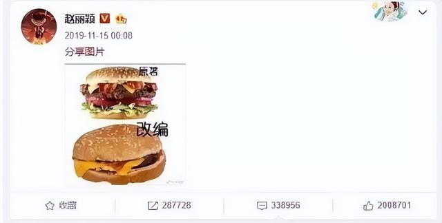 趙麗穎的這條動態也在當天引發了一個詞條「趙麗穎時隔四年再發漢堡圖」,也立馬引發了網友們的熱議了。當年的她是由於自己產後拍攝的首部作品《有翡》遭到了魔改,在萬般無奈之下才發文回懟,如今卻是想以此來提醒大家,顯然兩個的初衷是不同的。