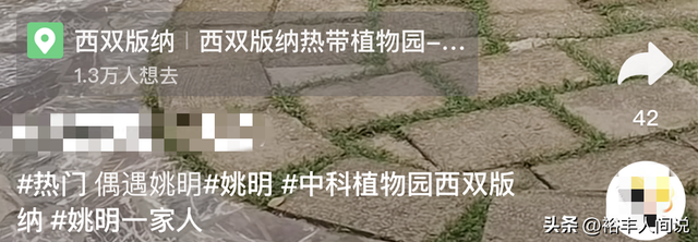 7月9號晚上,有網友在影片帳號上曬出偶遇姚明一家人的畫面,並透露地點位於西雙版納熱帶植物園。不知道是不是因為身份的原因,當天陪同一家五口的還有工作人員,前行的過程中,工作人員也是耐心為全家人講解。