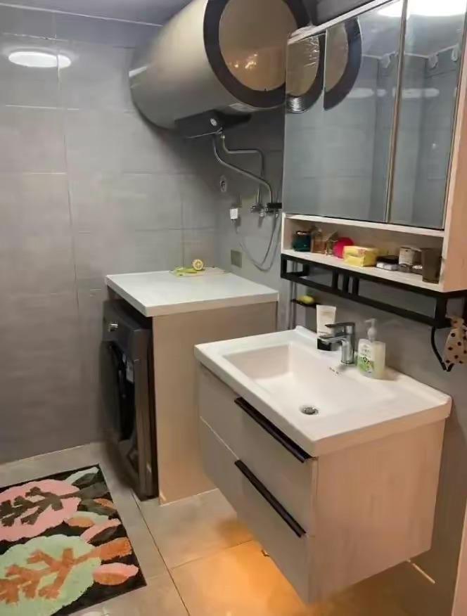 但改造完之後的衛生間,婆婆非常滿意。不管是浴室櫃,馬桶,洗衣機,還是熱水器都一應俱全,和居家生活的衛生間基本沒差。