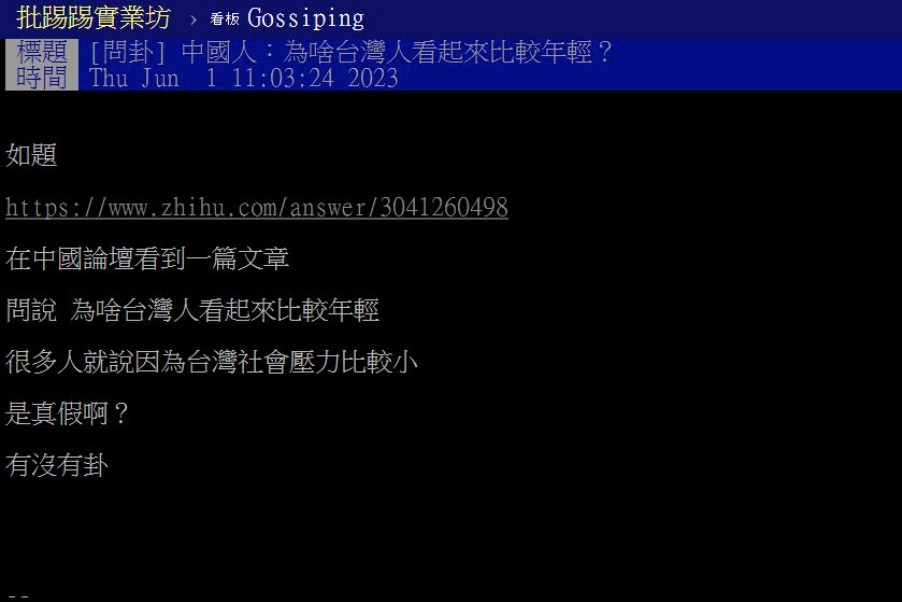 中國網友困惑「為何台灣人看起來較年輕」?他點出這差別:影響很大