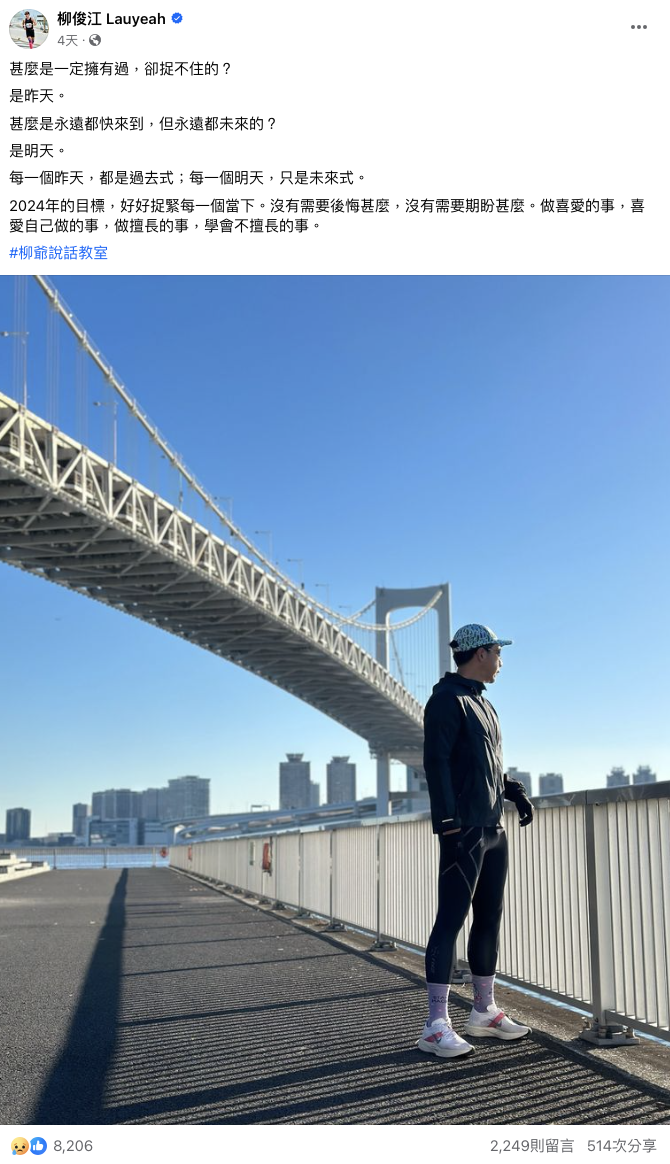 回顧他最新發文露面是在生前2天,當時正在教導站立姿勢,雖然面容略顯消瘦,但完全難不出有任何想不開的跡象,甚至在元旦當天許下新年目標,正向喊話:「每一個昨天,都是過去式;每一個明天,只是未來式。沒有需要後悔甚麼,沒有需要期盼甚麼。做喜愛的事,喜愛自己做的事,做擅長的事,學會不擅長的事。」如今卻傳出離世消息,令外界難以置信......