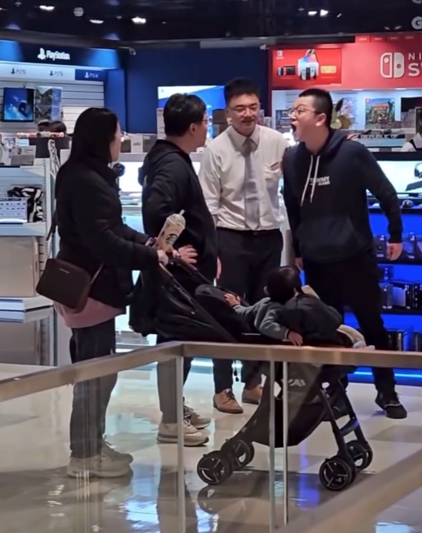 從網友公開的影片可以看到,該名當事男子在逛街時,突然被一旁孩童的尖叫聲嚇到,情緒失控對孩子大聲斥責。孩童的父母見狀立即出面理論,「你憑什麼罵」,而男子也不甘示弱,雙方一來一往,氣氛逐漸緊張。即便工作人員馬上上前調解,仍引來不少民眾圍觀。