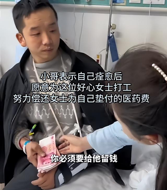 小哥也表示自己治好了之後願意給這個好心的女士打工,努力的償還為自己墊付的醫療費。