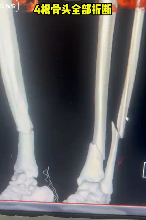 要知道人的腿上一共才有幾根骨頭,這一下就斷了四根,這該是一個多麼殘酷的現實。而且右腿脛骨是粉碎性骨折,左腿也是非常嚴重的骨折。