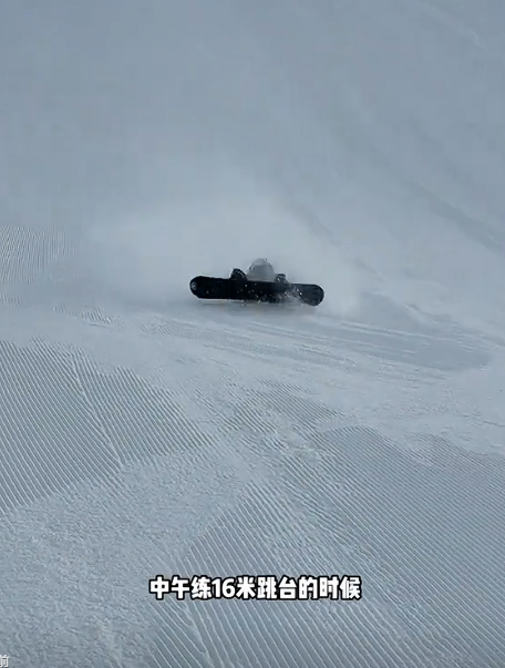 要知道這可是16米的高度,萬一掌握不好方向或者力度,很有可能就會摔下來。就算穿的滑雪服再厚實,也擱不住摔,嚴重的就會造成骨折甚至喪命。
