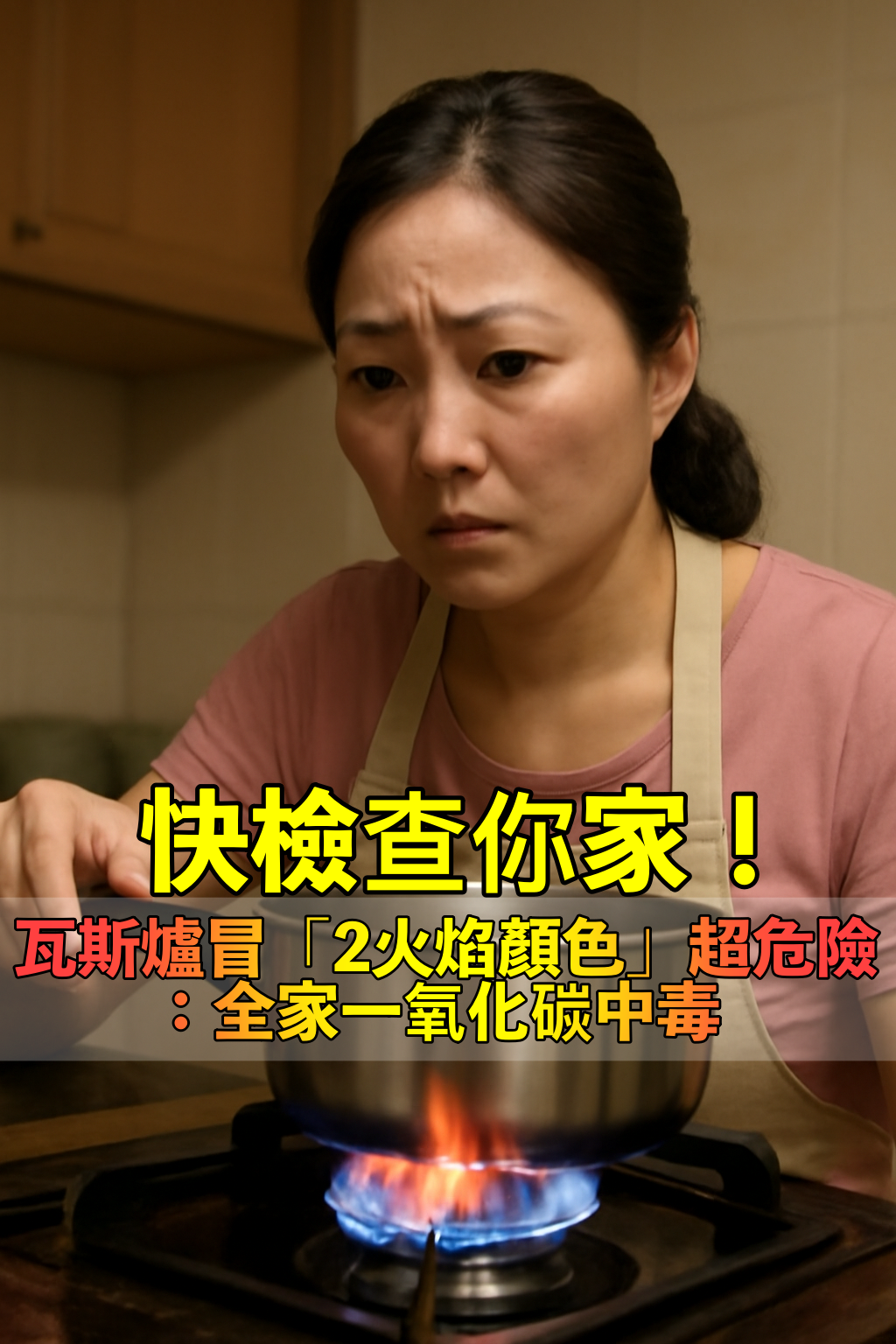 開火時務必多看2眼!瓦斯爐若冒「2火焰顏色」恐出事:全家一氧化碳中毒 我有話想說 2026-04-29 檢舉 圖片來源:妙招姐|YT一氧化碳中毒最可怕的地方在於初期症狀很像小感冒,容易被忽略,但嚴重起來可能會昏倒甚至丟掉性命。所以當你發現火焰顏色怪怪的,最好趕快檢查設備,或者試著調整瓦斯爐底下的風門,讓空氣多進來一點,把燃燒狀態調回正常,確保煮飯時的安全。 Advertisements 圖片來源:本網站付費AI製作,請勿任意轉載使用開火時務必多看2眼!別拿全家的生命安全開玩笑~來源:《東森新聞》 Advertisements 回首頁 2/2 Advertisements 猜你會喜歡 想遠離癌症,先管住嘴!腫瘤科醫生內部流傳「6大忌口清單」:醫生打死不碰,很多人卻天天吃 編輯精選推薦 More + 男性能活多久,看頭髮就知? 醫生提醒:若有「3徵兆」是身體在求救了 58萬股東嗨翻!這檔股票「配息2.5元創新高」 殖利率近5% 死後骨灰怎麼葬才好?這3種葬法千萬別選「無法超生還會禍及子孫」 每吃一次,乳癌就離你近一步?醫生:「這5物」是乳癌加速器! 轉晴、暴雨「變天變不停」!勞動節放3天「連假天氣出爐了」 怕電費爆表!他堅持「睡前冷氣定時」只吹2小時 一票內行人「曝省電撇步」爽爽吹整晚 夢幻神獸現身!他偶然拍到「首隻白色幽靈」驚豔全球 專家曝真實身份:「已經瀕臨絕種...」 馬上停用3款醬油!專家示警「罹癌風險飆2倍」:恐肝腎全壞掉 昔為父還9000萬債!方季惟罹癌重生「歡慶59歲生日」 不婚不生「發現2顆腫瘤」笑喊:看淡一切 「它」要來了?專家示警「恐衝擊全球」 不是觀光區卻超強!他封「根本夜市之光」:好吃好玩去不膩 68歲男子睡夢中離世!死因曝光「睡前喝水惹禍」 醫生警告:再口渴也不要喝這3種水 子宮內膜長息肉難發現?醫警告「身體出現3異常」別再忽略 只是做腸胃鏡檢查!台中二寶爸「驚傳身亡」女兒痛哭 診所出面回應了 比0050更讚?這檔股票「規模突破900億」專家認證:我也有買! 44歲許維恩罹乳癌!醫示警「3日常用品」易致癌:別碰才能保命 不是勞碌命!4生肖女「一輩子無憂無慮」 不管到幾歲「都會有人寵」 身體亮紅燈?74歲大咖巨星「被拍坐輪椅暴瘦」 兒子出面認了「做了3次手術」健康狀況曝光 這檔股票「配息4元太香」!殖利率破11%「股價直噴漲停」 以為只是小感冒!本土女星悲痛證實「他併發肺炎過世」 一度淚灑現場「後悔同意插管」 86歲蕭萬長「逆轉肺癌」!秘訣竟是「靠1碗養生湯」每周喝4次:快速清毒素 肺部出問題,喉嚨先知!喉嚨「出現6個信號」恐已在求救 下面凸一顆竟是HPV!20歲女大生崩潰「從沒壞壞過」 醫揪元兇「3大地雷區」:一染到就難斷根 切記!家裡這3個地方「不要掛毛巾」真不是迷信 掛錯「影響健康」快叮囑家人 不管臥室有多寬敞!最好別放「這5種物品」 很多人都「中招」了