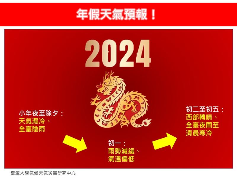 台灣大學大氣科博士林得恩也在臉書發文,透過圖片替大家分析過年期間的天氣,一張圖看懂春節天氣。大家出門前記得多留意天氣預報,尤其晚上出門記得要穿厚一點注意保暖。