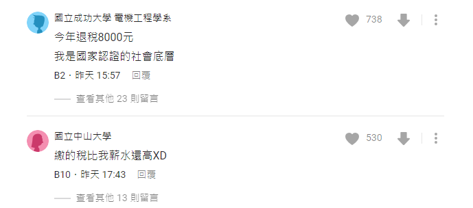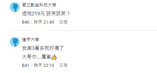 看到原PO高達7位數的稅金,網友們立刻掀起熱烈討論,紛紛表示「今年退稅8000元 我是國家認證的社會底層 」、「繳的稅比我薪水還高XD」、「總經理等級了」 、「對不起我拉低大家的平均,我還退70幾元」、「算了一下至少年入一千三百萬」。
