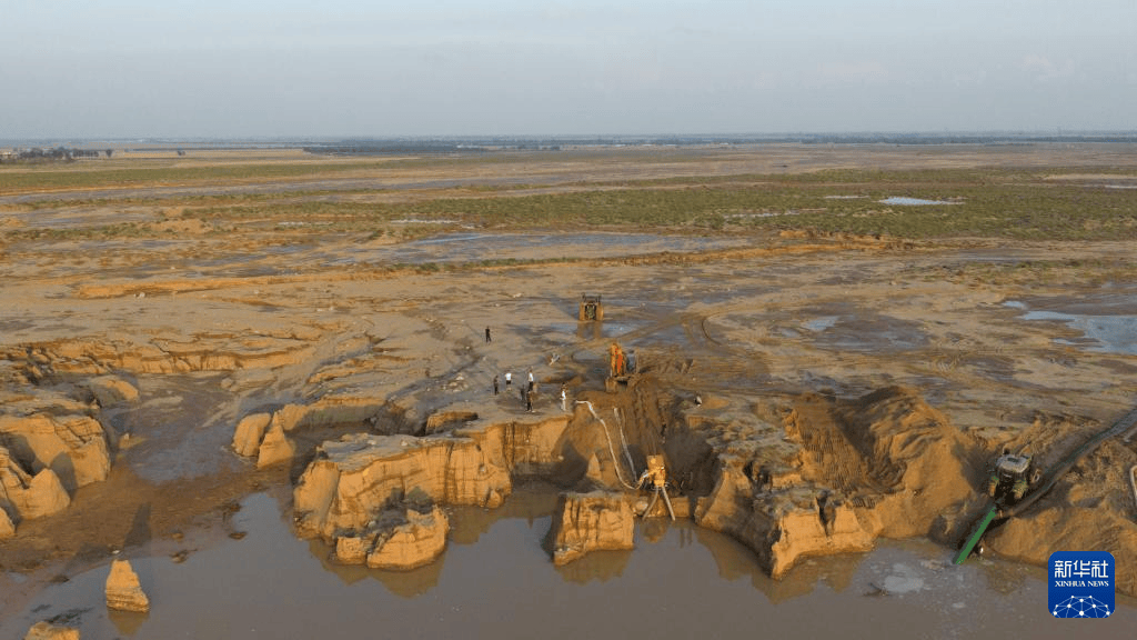記者在現場看到,洪水已基本退去,局部低洼地勢匯聚了積水,救援人員正抓緊時間排水。原本平整的地面被洪水沖刷后,到處是縱橫交錯的車轍痕迹和厚厚的淤泥,淤泥上能看到車輛殘骸和掉落的輪胎。