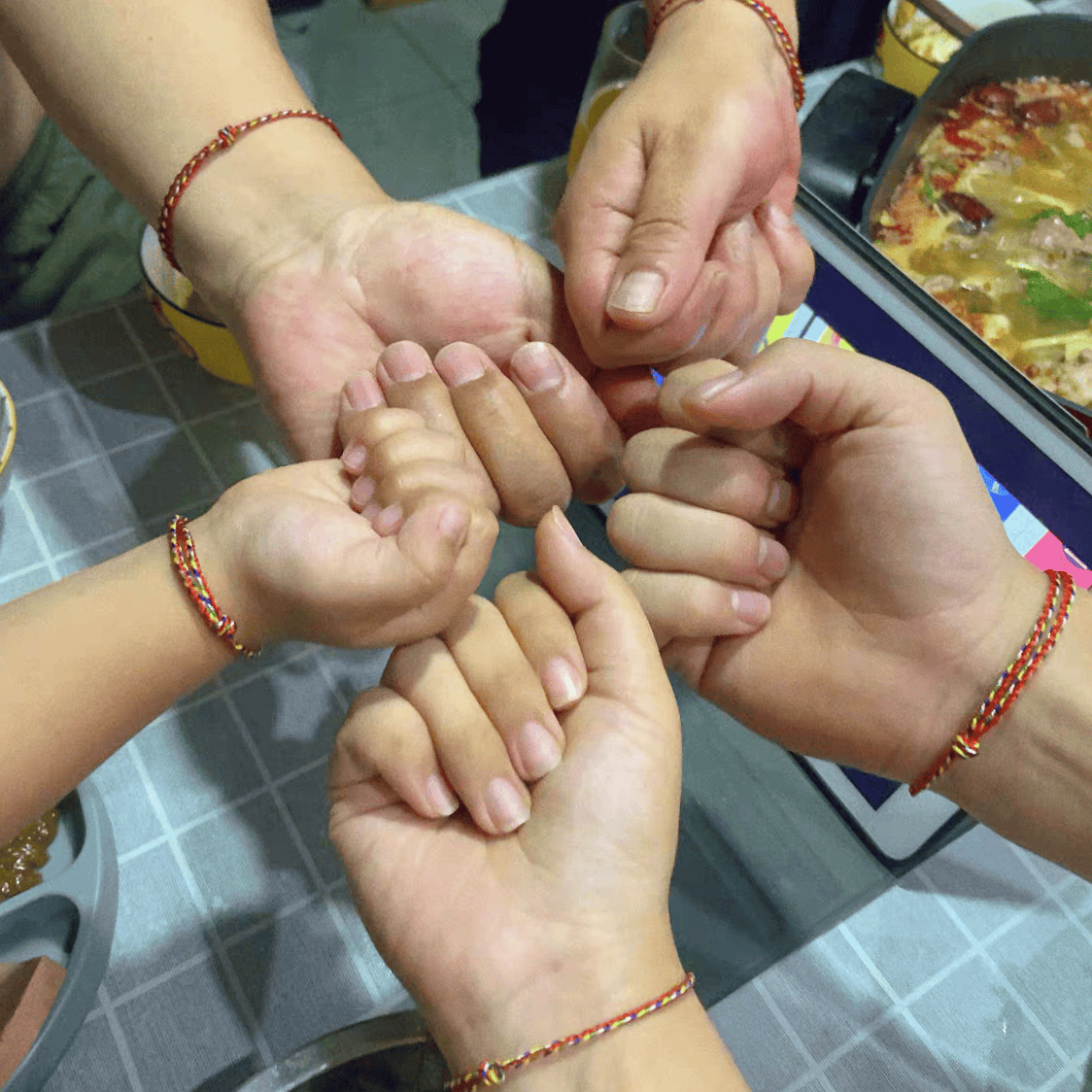 一戴:金木水火土,五行齊聚,五彩繩的顏色選擇至關重要,在中國傳統文化中,五方五行對應「青、紅、白、黑、黃」五種顏色,象徵著五行能剋制五毒,驅邪免災。還有一種解讀,那就是紅、黃、藍、綠、紫。這五種顏色在傳統文化中被賦予了特殊的意義,象徵著五行相生相剋,寓意著驅邪避災、保佑平安。