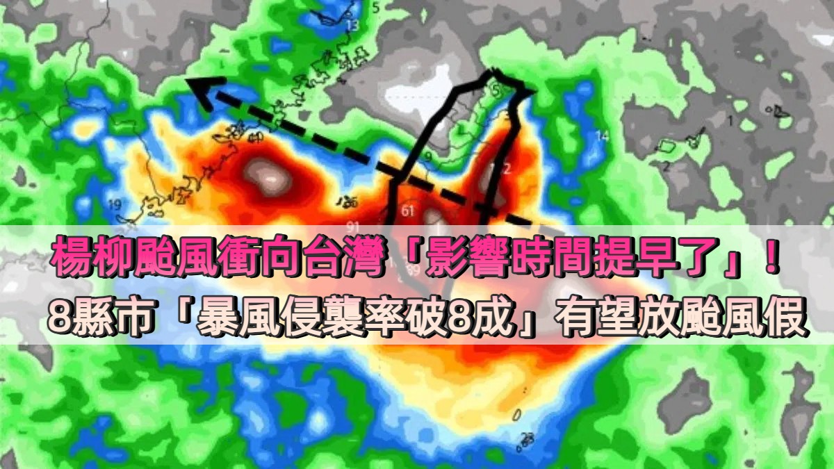楊柳颱風衝向台灣「影響時間提早了」!8縣市「暴風侵襲率破8成」有望放颱風假