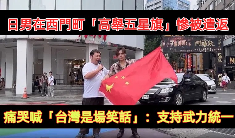 日男在西門町「高舉五星旗」慘被遣返!痛哭曝心聲「台灣是場笑話」:支持武力統一
