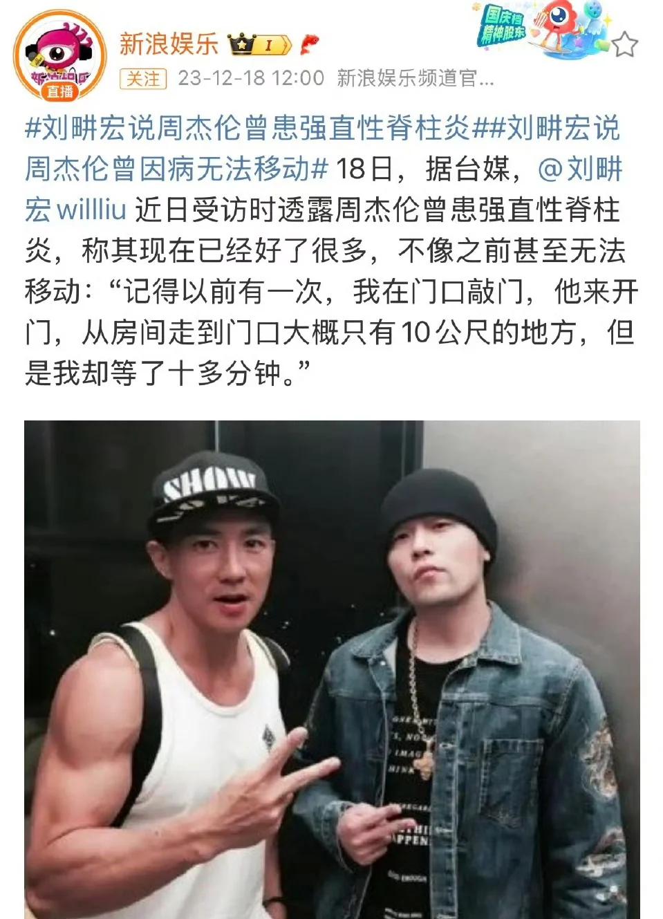 劉畊宏曾透露,周杰倫發病時完全無法移動,甚至需要坐著睡覺才能緩解疼痛。
