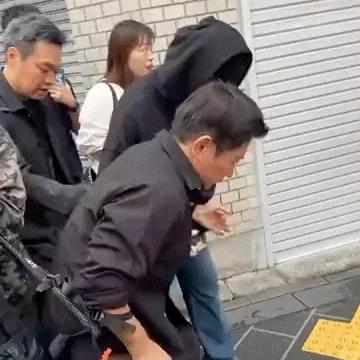 只見他一手摟著老婆,走路時步伐緩慢腰背有點駝,雙腿還是呈現出羅圈腿的狀態,和舞台上活力滿滿的樣子反差大。