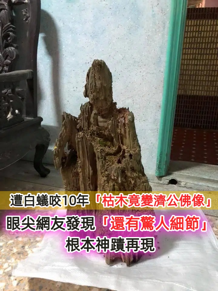 遭白蟻咬10年「枯木竟變濟公佛像」!眼尖網友發現「還有驚人細節」根本神蹟再現!