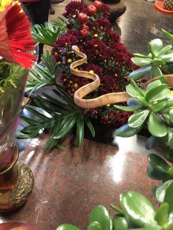 10年沒缺席!南投玄天上帝「蛇將軍」每逢端午現身 攀上供花「向帝爺公鞠躬行禮」廟方:牠很有靈性