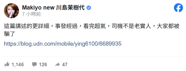 才遭遺孀嗆告!Makiyo再撂話「司機就不是老實人」 PO「判決書細節」:看完超氣