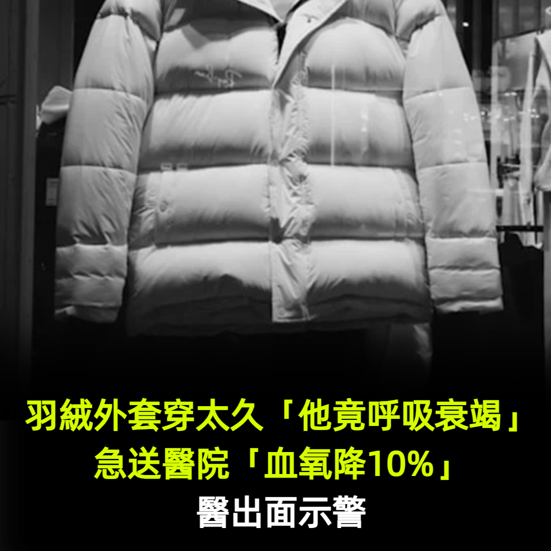 羽絨外套穿太久「他竟呼吸衰竭」!急送醫院「血氧降10%」醫出面示警