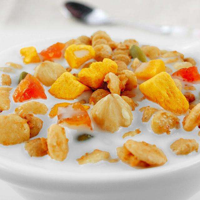 對於減肥的人來說,我們可以多吃點粗糧食品,因為粗糧食品能增加我們飽腹感,同時還能促進消化,幫助減少多餘高熱量、高油脂食物攝入體內。此款水果燕麥,不僅含有豐富的膳食纖維,還具有多種維生素,既能解決減肥問題,還能幫助人體補充多種維生素。