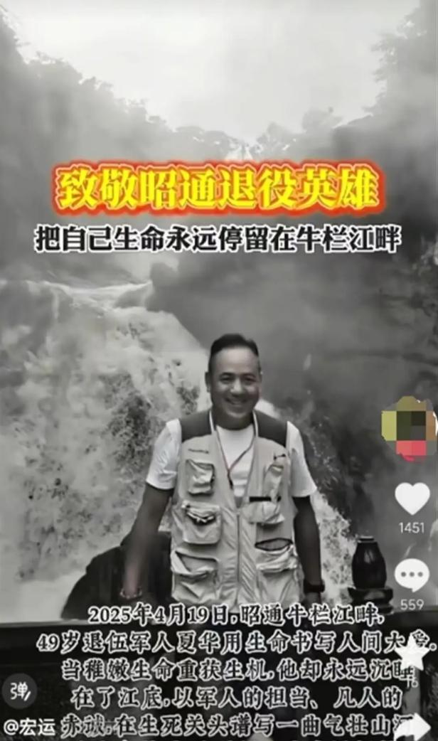 近日,多位網友發文悼念為救人不幸遇難的退役軍人夏華,生前他曾是昭通衛生職業學院的保衛科科長。