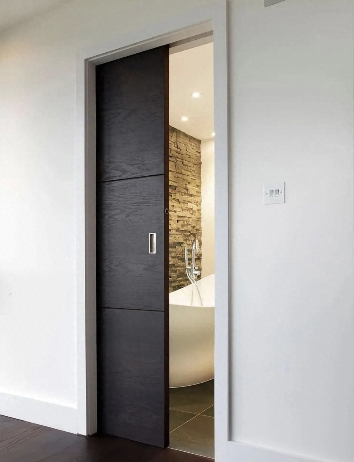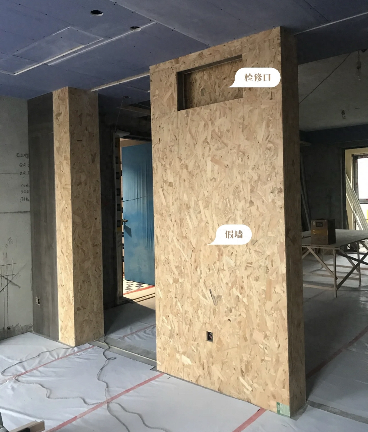 ②隔牆種類多,選擇適合的即可,口袋門是要木工提前做雙面隔牆的,材質可以是牆體、木工隔板、鋼架隔牆封板等等。