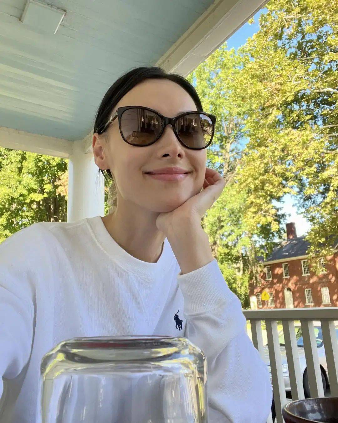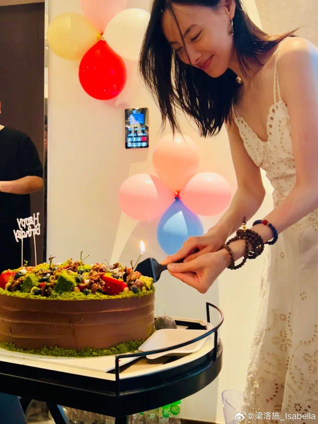 她身穿白色吊帶裙,戴著佛珠手串切蛋糕,配文「以赤誠之心擁抱紅塵者,皆得時光輕撫眉間紋」,字裡行間都是鬆弛自在。