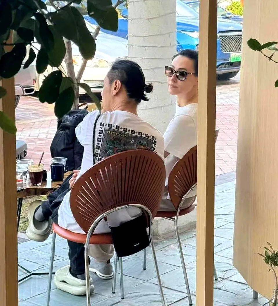 在北京的榮祥廣場喝咖啡,倆人一起穿「情侶白T恤」。馬浴柯腳上蹬著的,正是最近現身機場被拍時穿的那雙拖鞋~
