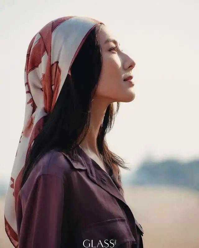 最絕的是她的側顏殺,下頜和鼻樑線條相當能打,戴頭巾也掩飾不住清冷感。
