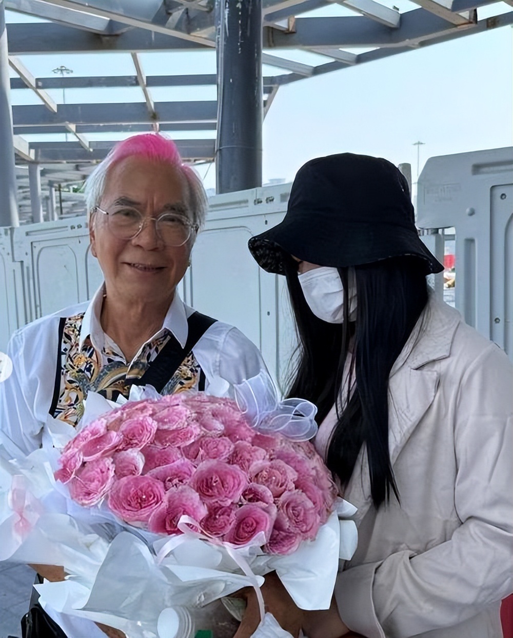 李龍基在王青霞出獄的時候,頂著挑染的一坨粉色的頭髮,並抱著一束粉紅色的玫瑰花來接她。