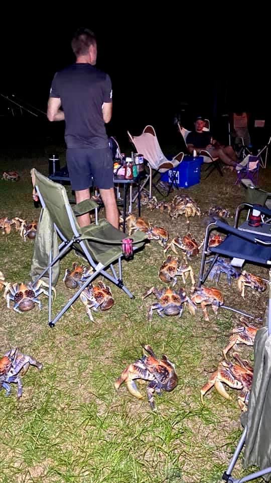 根據ladbible報導,有一位網友表示自己到澳洲聖誕島進行家族旅行,一家人在露營晚餐時舉辦了一場燒烤派對,沒想到當準備好豐盛佳餚,正要大快朵頤時,周圍突然竄出一群巨大的「棕色生物」包圍了他們!