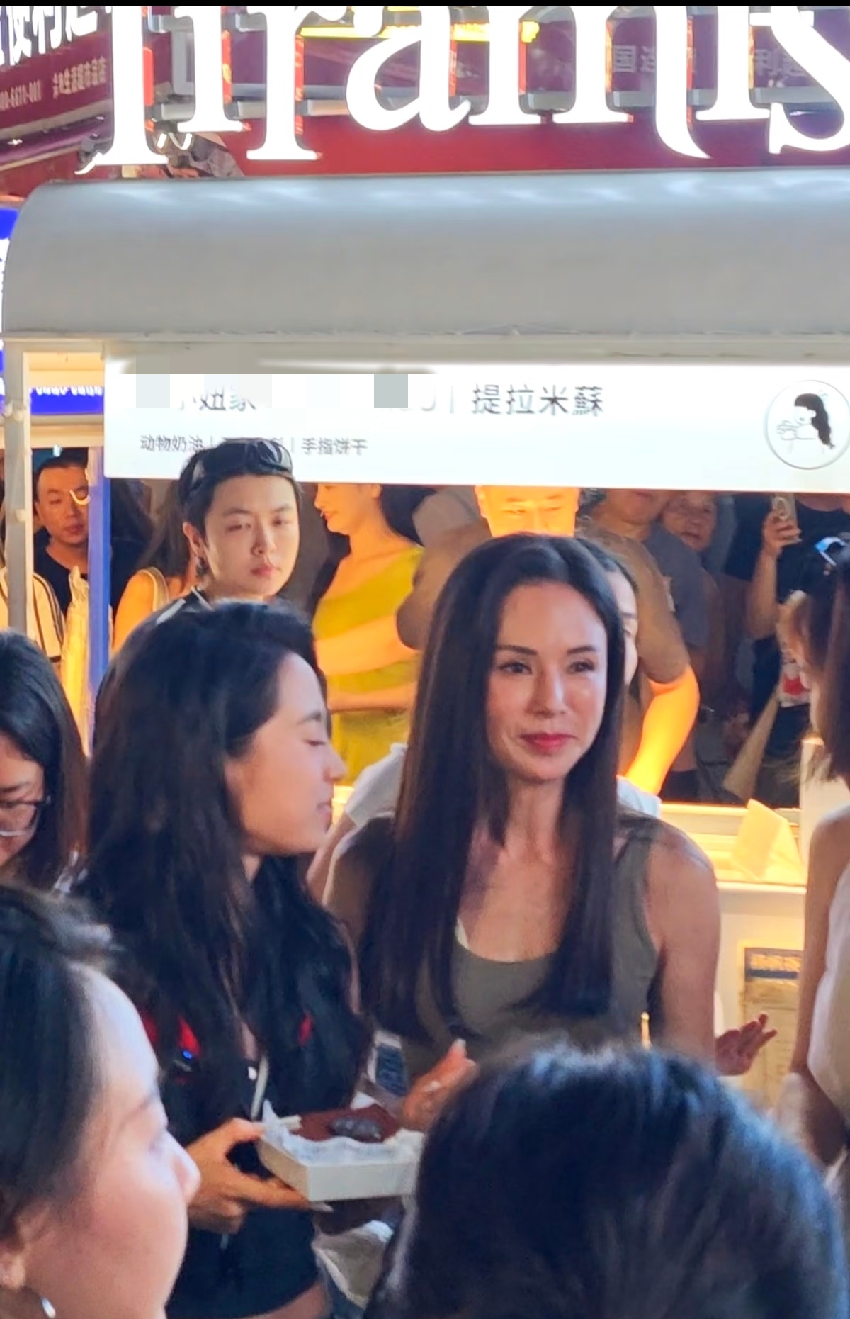 她沒有帶保鏢,跟著一位年輕的小姐姐一起,兩個人如同普通消費者一樣逛來逛去,還時不時買東西吃。