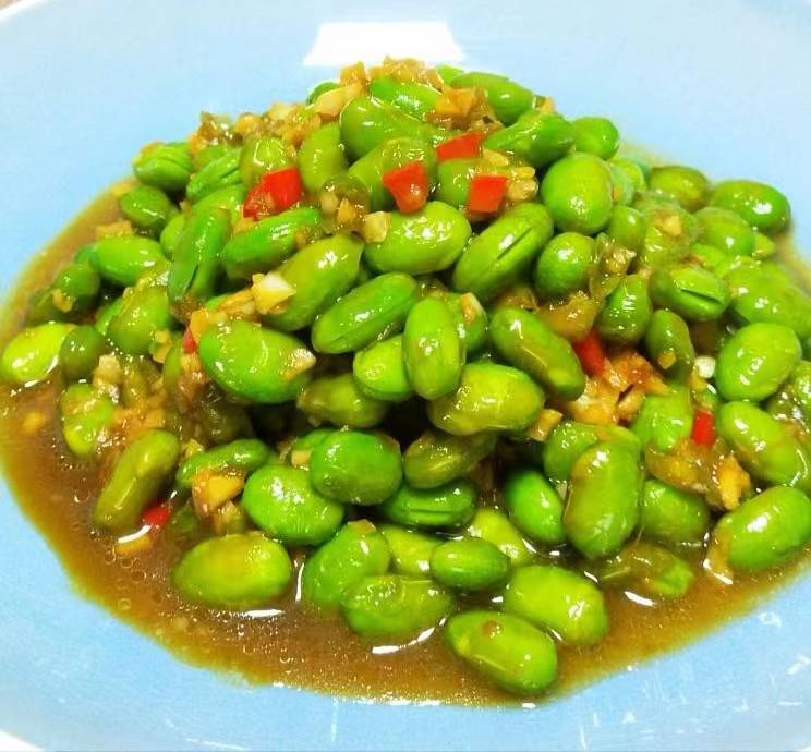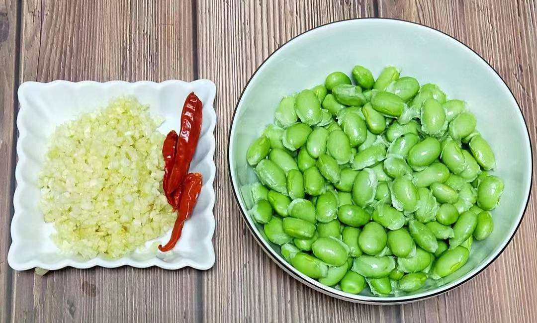 1、新鮮的毛豆粒剝出,另外多備些蒜蓉,喜歡辣的再備上兩個小米椒。